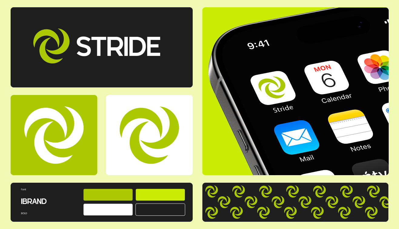 We explored logos inspired by streaks, electric currents, lightning bolts, and the ‘S’ of Stride shaped into a dynamic path.